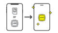 従来のSIMカード(物理SIM)が、端末に差し込む小さなICチップのカードであったのに対し、eSIMはスマートフォン本体の基板に最初から組み込まれているチップです。